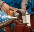 • Technician Cutting Metal WithMany Sharp Sparks Equipm